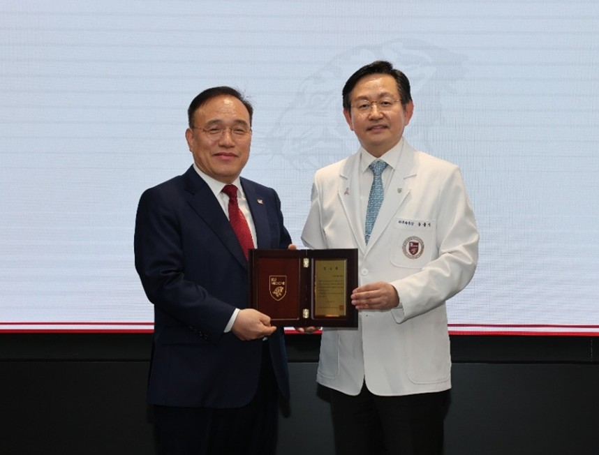 행사에는 윤을식 의무부총장, 편성범 의과대학장, 김현수 교수와 황성관 대표이사, 박장하 부사장, 홍문기 최고재무책임자 등이 첨석했다.