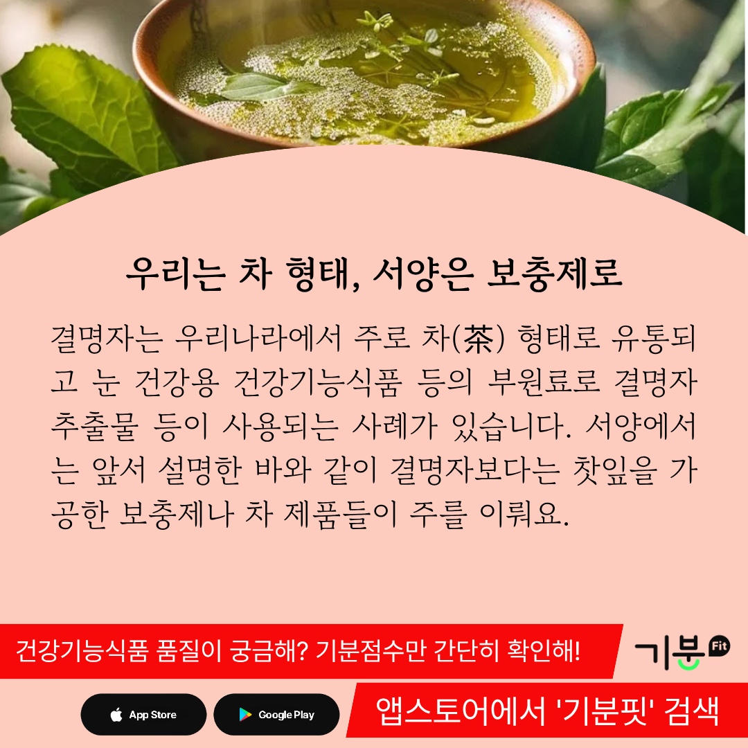 서양에서는 앞서 설명한 바와 같이 결명자보다는 찻잎을 가공한 보충제나 차 제품들이 주를 이룬다.