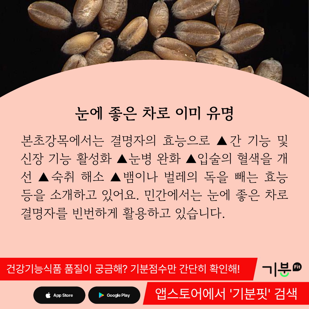 실제로결명자는 섬유질이 풍부하고 안트라퀴논계 유도체를 함유하고 있기 때문에 다양한 건강효능을 기대할 수 있다.