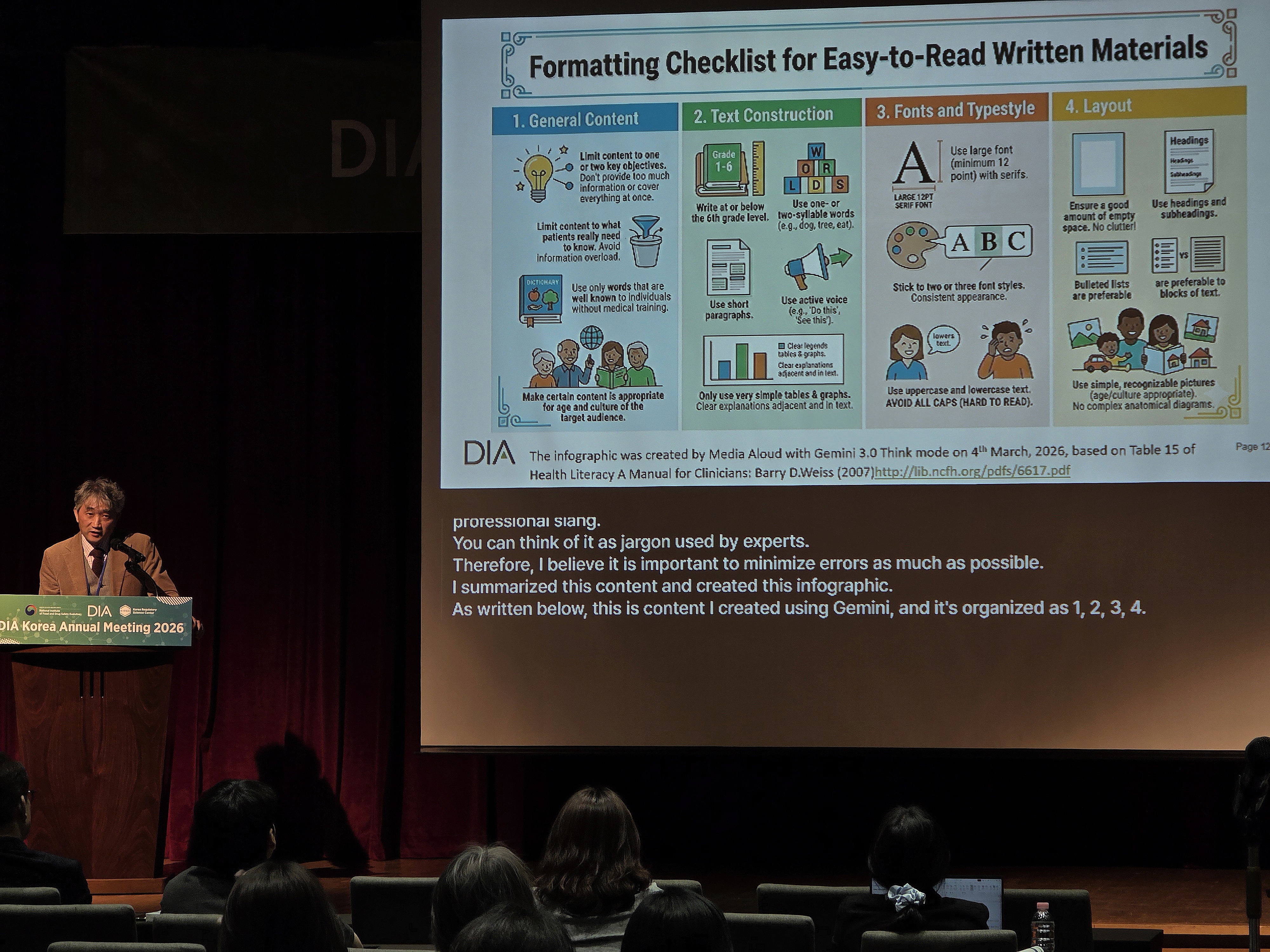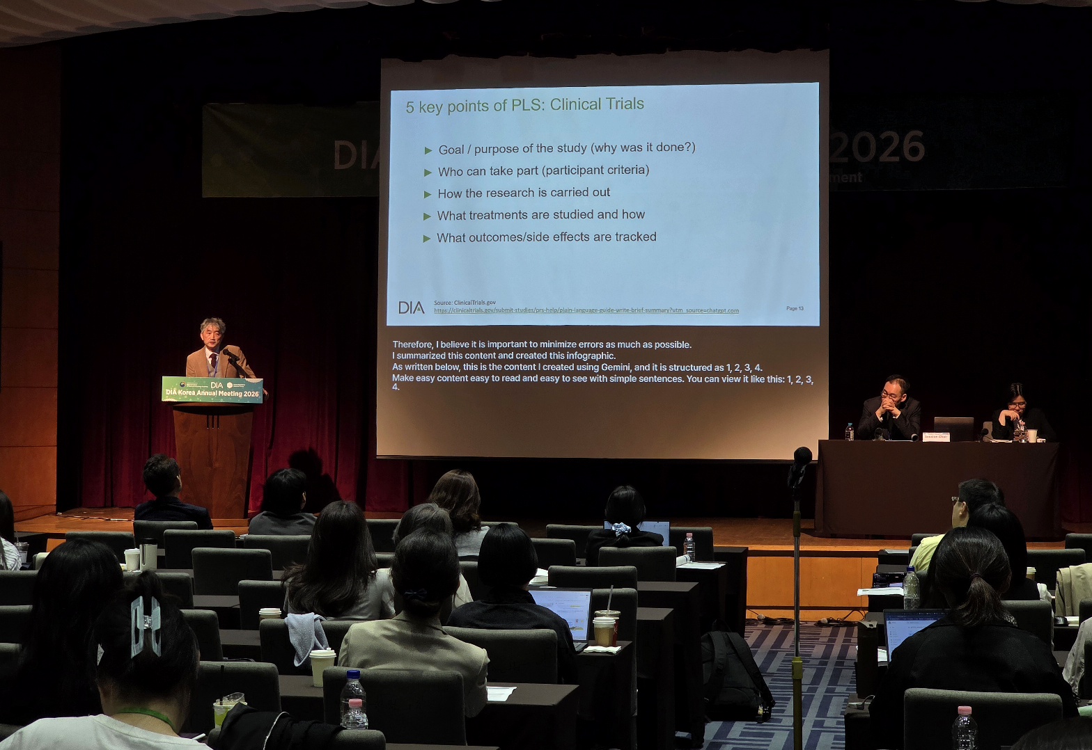 미디어 얼라우드 오광일 대표는 15일 서울 용산구 백범김구기념관에서 열린 ‘DIA Korea Annual Meeting 2026’에서 ‘의료 커뮤니케이션 인터페이스: 과학·환자·현장을 연결하다’ 세션 연사로 나서, ‘정보에 기반한 환자 역량 강화: PLS가 의료 커뮤니케이션의 미래인 이유(Empowering the Informed Patient: Why Plain Language Summaries are the Future of Medical Communication)’를 주제로 발표했다.