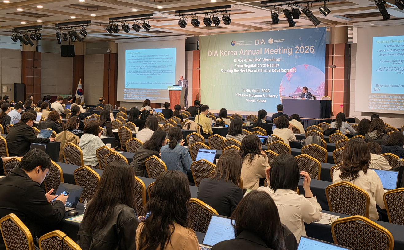 DIA(Drug Information Association)가 지난 15일부터 16일까지 서울 백범김구기념관에서 ‘DIA Korea Annual Meeting 2026(연례회의)’을 개최했다. 이번 행사는 ‘규제에서 현실 적용으로: 임상개발의 새로운 시대를 만들어 가다(From Regulation to Reality: Shaping the Next Era of Clinical Development)’를 주제로, 글로벌 규제 환경 변화와 임상개발 혁신 전략을 중심으로 논의를 진행하는 자리로 마련됐다.