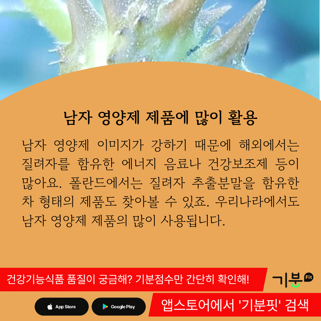 우리나라에서도 남자 영양제 제품의 부원료로 질려자를 활용한 사례가 심심찮게 발견된다.