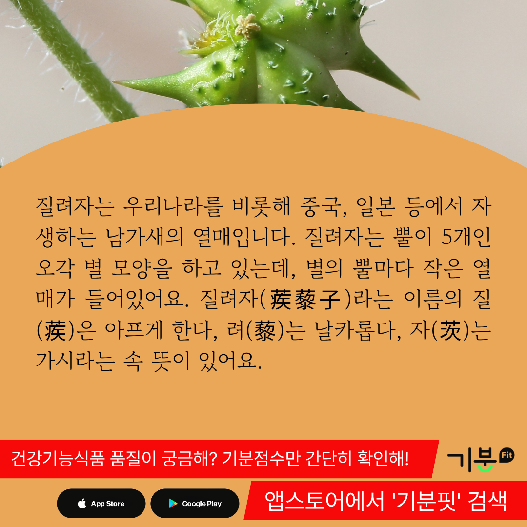 질려자는 우리나라를 비롯해 중국, 일본 등에서 자생하는 남가새의 열매다.