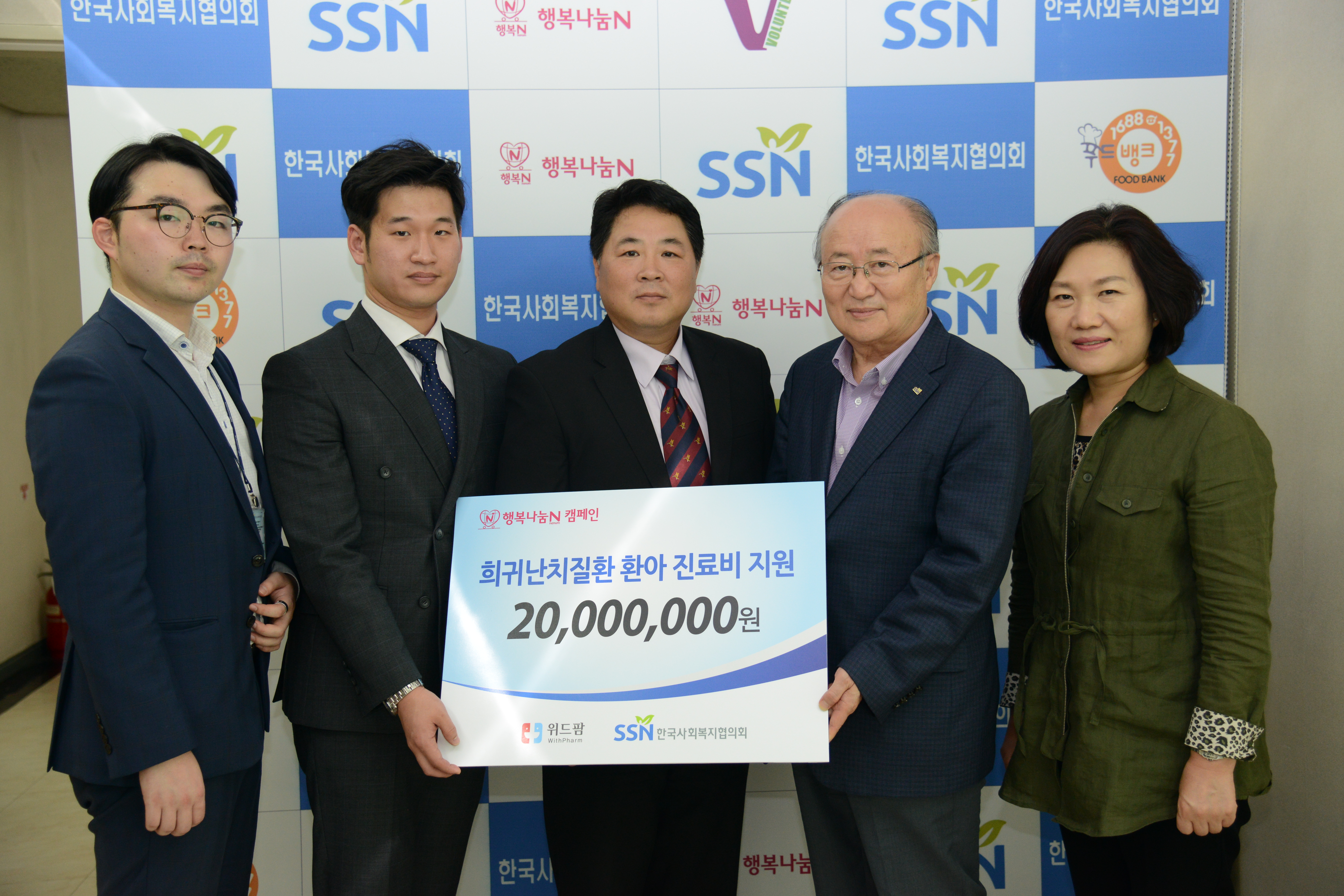한국사회복지협의회(회장 차흥봉)가 주관하는 ‘행복나눔N’ 캠페인 참여(새생명지원사업 지정기탁)기업인 (주)위드팜과 회원약국은 10월 22일 소아암백혈병, 희귀난치질환 환아들의 치료와 건강한 성장을 지원하기 위한 기부금을 전달했다.