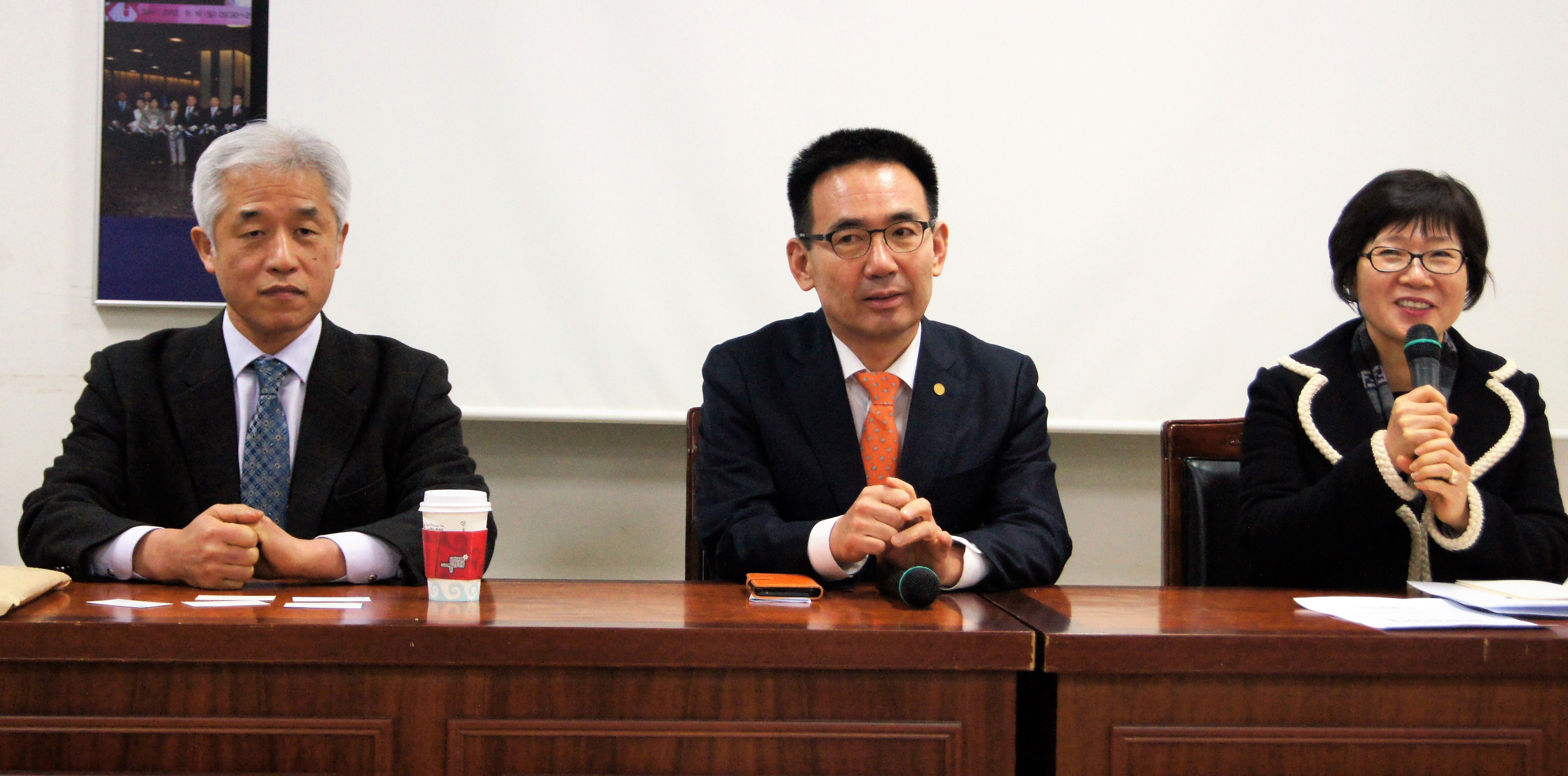 서울약사회 김종환 회장과 박규동 부회장, 김예지 학술이사는 7일 노인약료 전문가 과정에 대한 기자 간담회를 열고, 앞으로의 교육계획과 제도화 추진 방안을 설명했다.