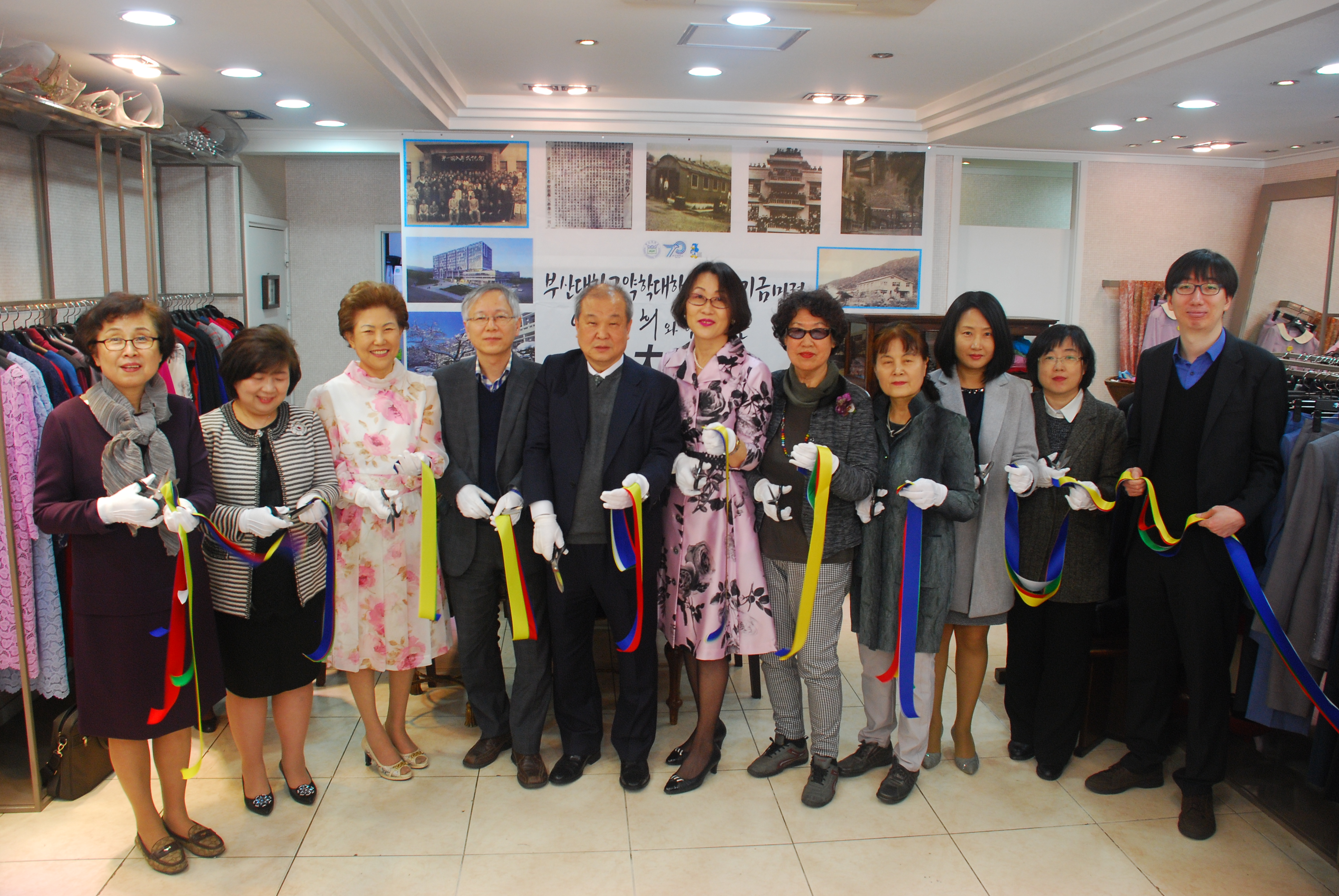바자회 오픈일인 10일 오전 박미희 부산약대 여동문회장, 정연진 부산약대 학장, 박민수 부학장, 박상일 부산약대 총동문회장, 박영순 전 부산약대 총동문회장, 박희정 부산시여약사회장, 강혜희·김외숙·박송희 전 부산여약사회장, 이영희 디자이너 등이 참석해 축하 컷팅식을 가졌다.