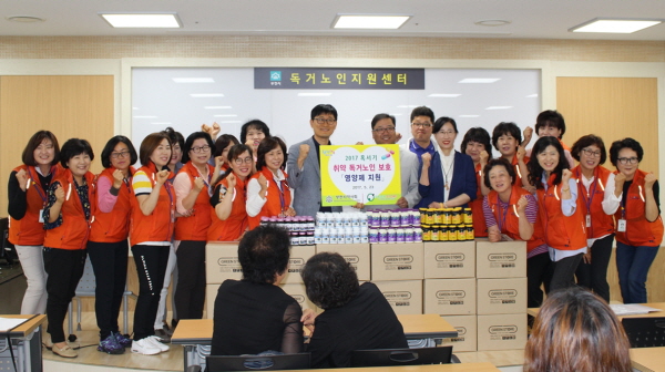 부천시약사회(회장 이광민) 여약사위원회(여약사회장 윤선희)에서는 5월 23일 부천시 독거노인 지원센터(센터장 김영란)를 방문해 2017 혹서기 취약 독거노인 보호를 위해 영양제를 지원했다.