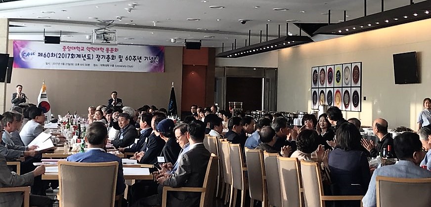 중앙대 약학대학 동문회가 27일 중앙대 약대 11층에서 '제 60차(2017년) 정기총회' 열고 신임 회장으로 홍종오(21회) 부회장을 선출했다.