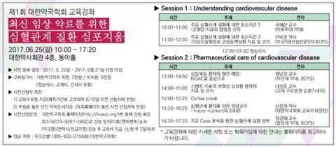 대한약국학회(회장 강민구)는 오는 25일 10시부터 대한약사회관 4층 동아홀에서 최신 임상 약료를 위한 심혈관계 질환 심포지움 개최한다.