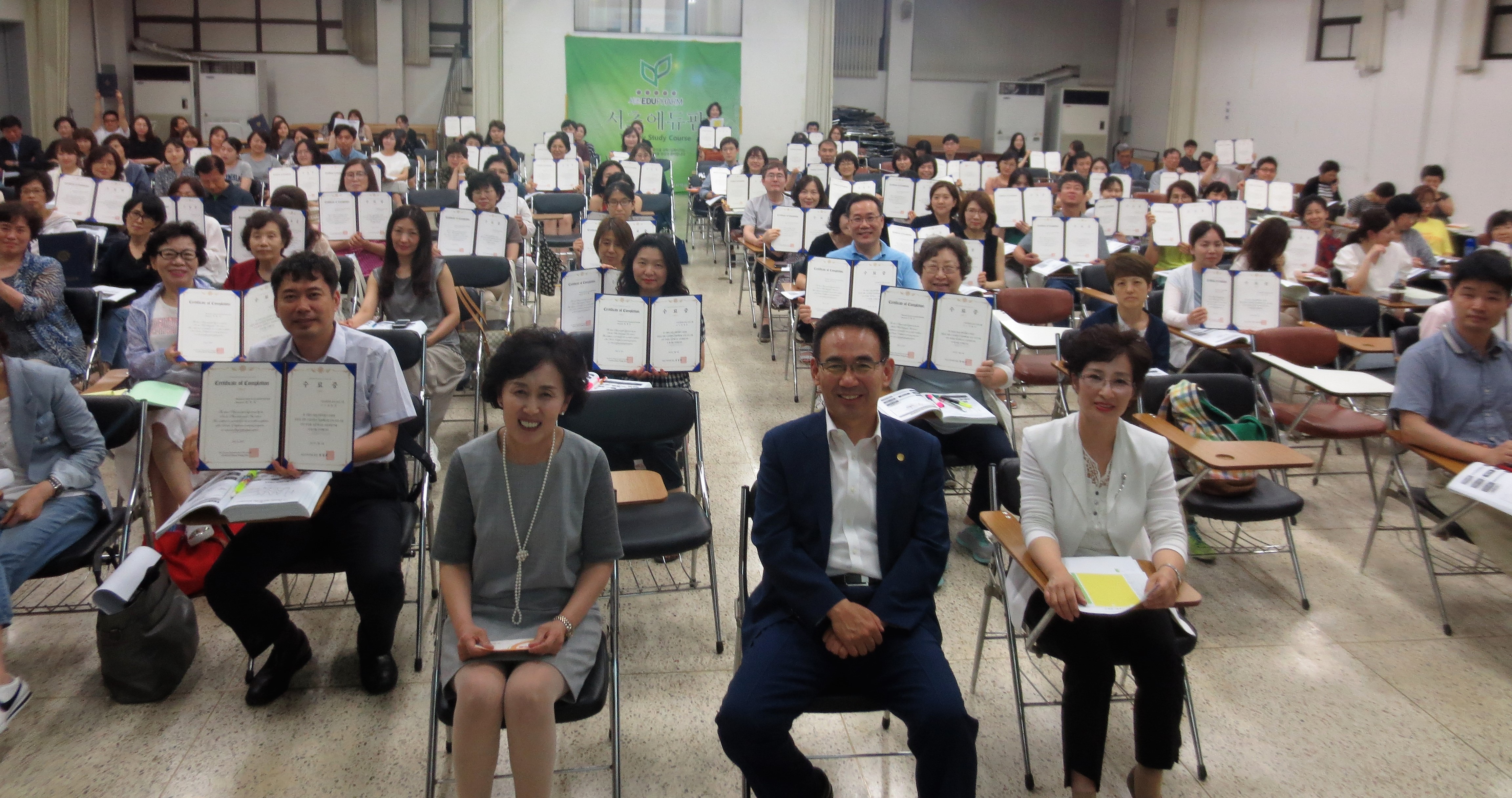 권영희 회장은 "지난 15주 동안 개근하신 분이 33분이나 계시고, 에듀팜 11기부터 1년 6개월 간 개근하신 분도 3분이나 계시다"며 "서초에듀팜 강의를 계획하고 강사를 섭외하고 진행하는 일이 쉽지 않음에도 불구하고 이렇게 빠지지 않고 강의를 수강해 주신 분들 덕분에 보람을 느낀다"고 말했다.