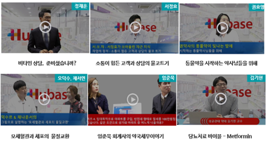 휴베이스 회원들을 위한 강의로서 약국상담, 제품, 취미, 세무, 법률 등의 다양한 주제로 지난 1년간 매주 1회씩, 50여회에 걸쳐 방송을 했으며, 누적 시청자는 5,200여명에 달한다.