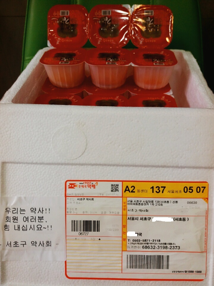 서초구약사회(회장 권영희)는 습하고 무더운 여름, 대한약사회의 금품비리, 회계부정 문제로 무거운 회원들의 마음을 위로하고 건강한 여름나기를 바라는 마음으로 전 회원약국에 시원한 아이스홍시를 배송했다.
