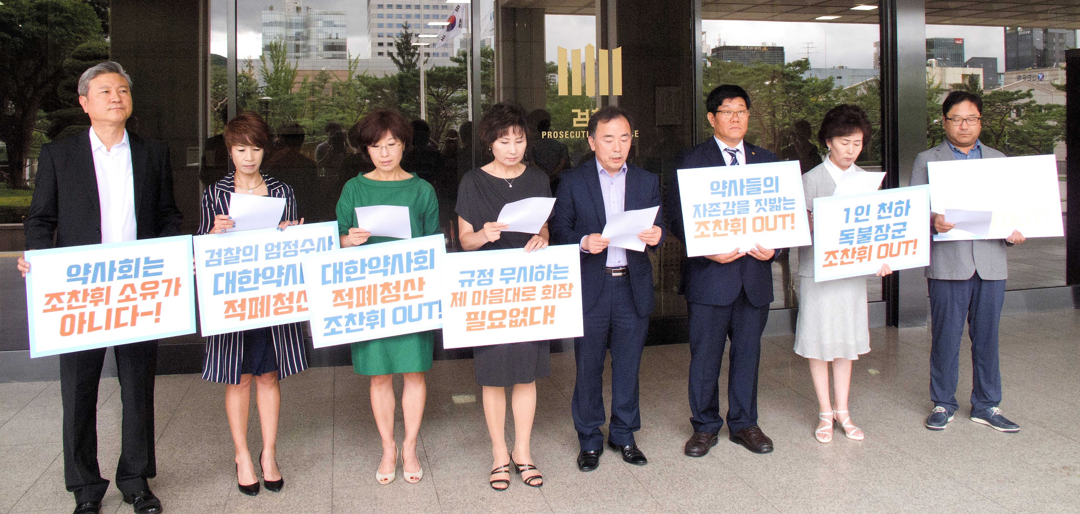 고발장 접수 현장에 참석한 추연재(서울 동대문구약사회), 신성주(서울 강남구약사회), 박승현(서울 송파구약사회), 한동주(서울 양천구약사회), 이현수(경기 하남시약사회), 최종수(부산 동래구약사회), 권영희(서울 서초구약사회), 이광민(경기 부천시약사회) 회장 등은 추가고발에 대한 착잡반 심정을 전하는 한편, 조찬휘 회장의 잘못에 대한 분명한 책임을 강조했다.