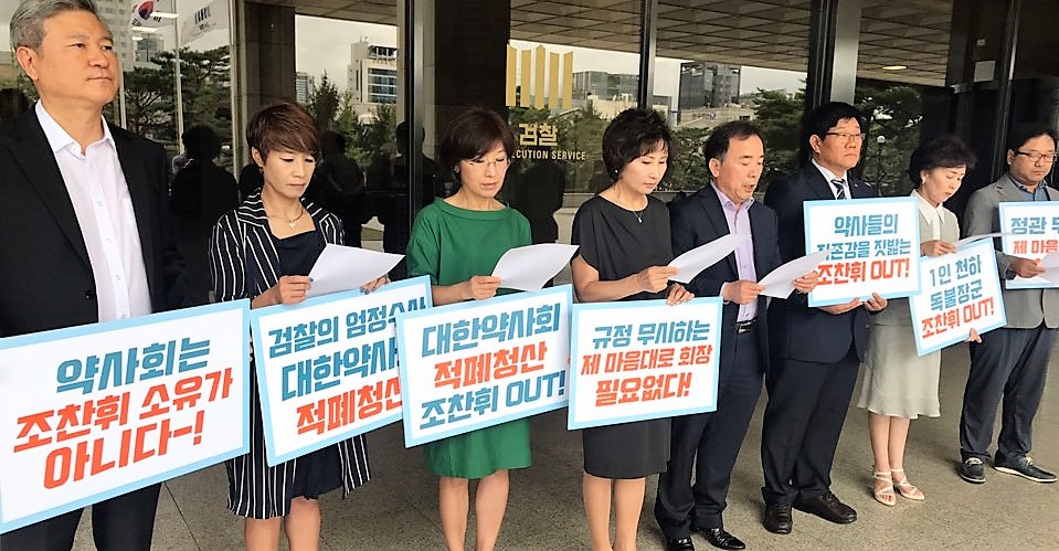 고발장 접수 현장에 참석한 이들은 "검찰 고발로 이어진 이번 사태에 대한 원인은 조찬휘 회장 개인에 있다"며 "'사퇴'라는 책임을 질수 있는 기회를 수 차례 줬음에도 이를 거부한 것은 약사회 회무 정상화를 바라는 회원들의 바람을 거부한 것"이라고 강조했다.