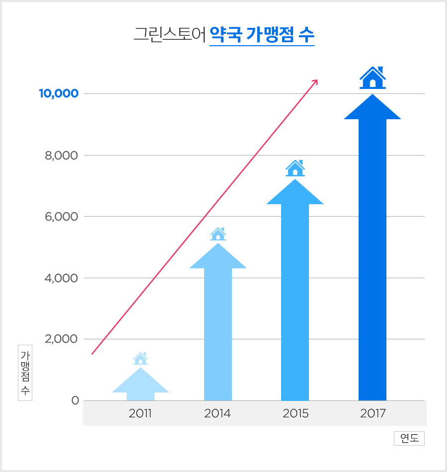 전국 약국의 2곳 중 1곳에는 그린스토어 제품이 입점 되어 있는 셈이다.