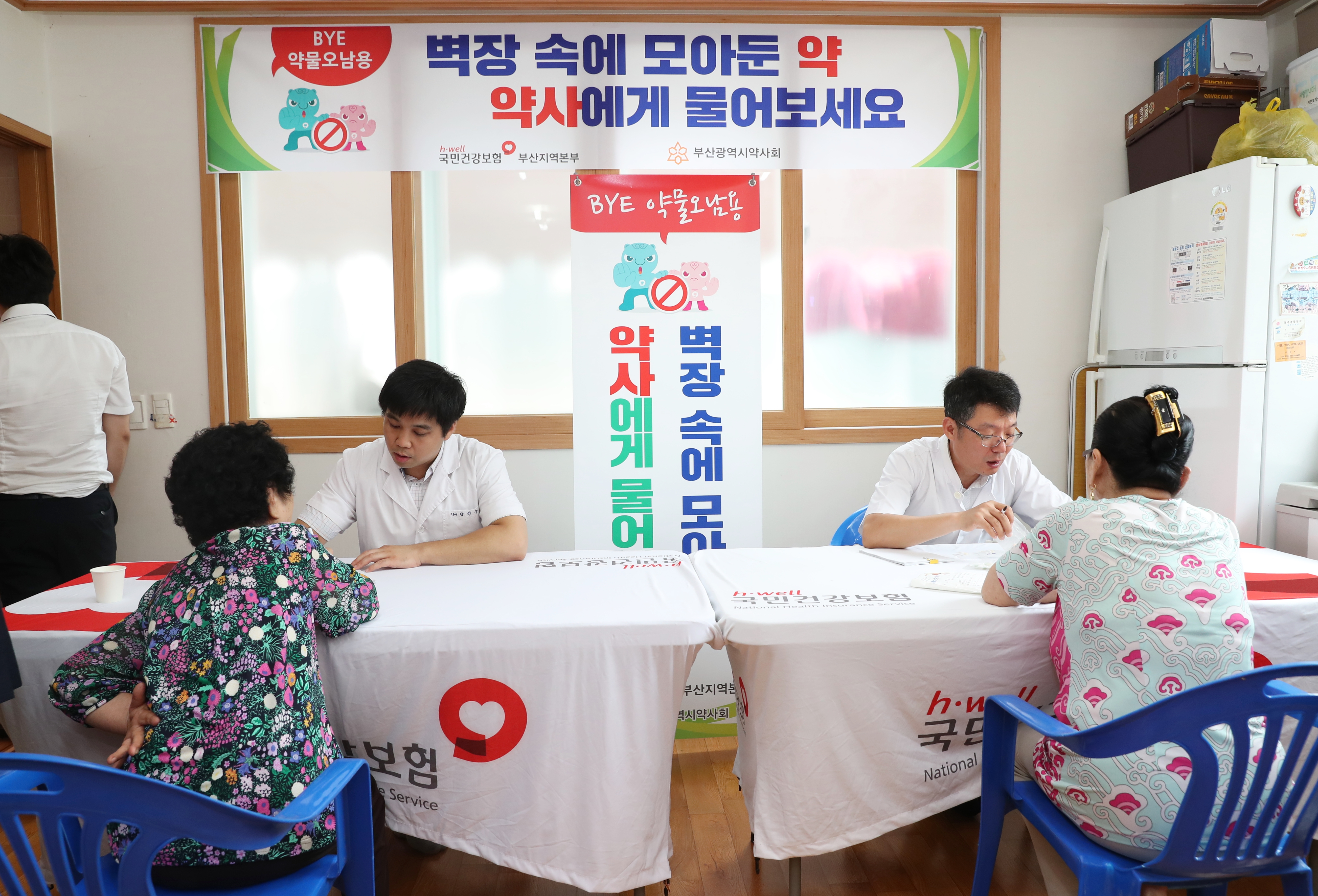 부산시약사회와 국민건강보험공단 부산지역본부(본부장 김선옥)가 공동으로 진행하는 『BYE 약물 오・남용』사업은 병원 처방 약, 건강보조 식품 등에 대한 올바른 복약 상담을 통해 어르신들의 약물 오・남용을 방지하고, 약제비 절감을 도모하고자 7월에서 10월까지 32개 경로당 700여명 어르신을 대상으로 실시하고 있다.