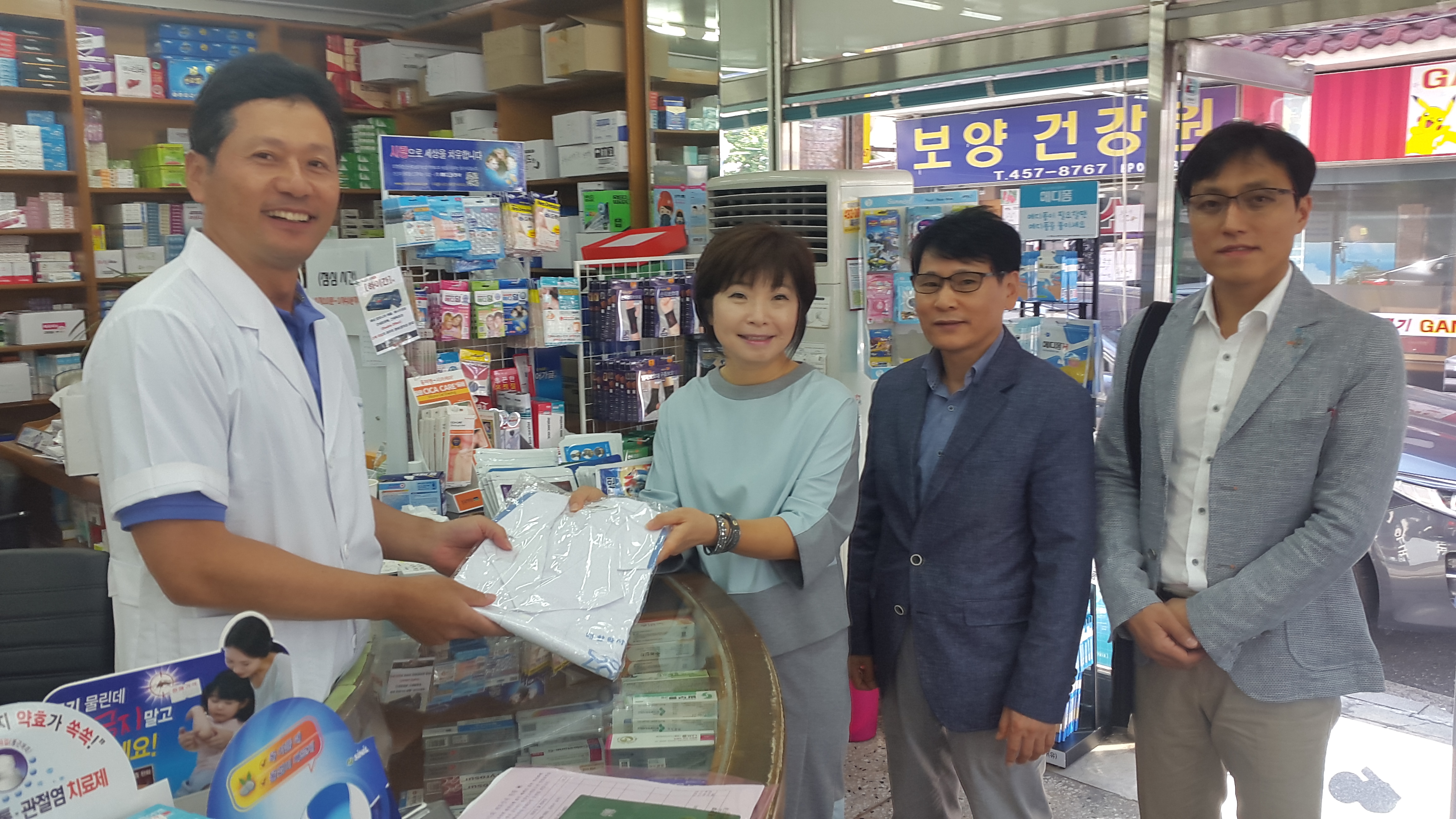 이날 조영희 회장, 김경훈· 손효환 부회장이 약사회에서 준비한 가운과 회원명부 및 공지사항을 전달하며 새가족이 된것을 환영하고 고충을 청취했다.