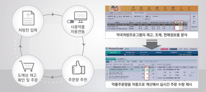 그 밖에도 약국에서 구매할 약품을 선별하여 재고 소진 전 주문리스트를 만들어 보여주는 오토카트(Auto-Cart) 서비스를 선보일 예정이다.