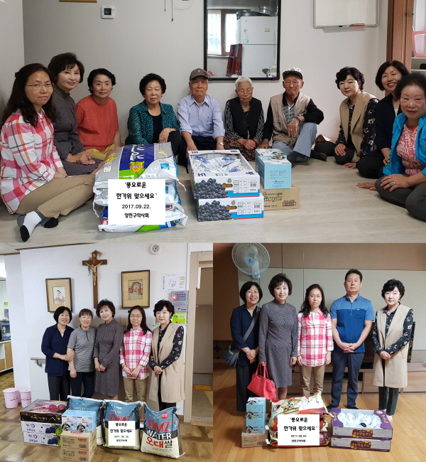 서울 양천구약사회(회장 한동주) 여약사위원회(부회장 이진순)와 기부동호회(동호회장 김병록)는 지난 22일 한가위를 맞아 무의탁 노인을 돌보는 ‘두엄자리’ 가정식 보육원인 ‘요셉천사의 집’을 비롯해 관내 노인정을 방문해 쌀과 과일, 상비의약품 등을 전달했다.