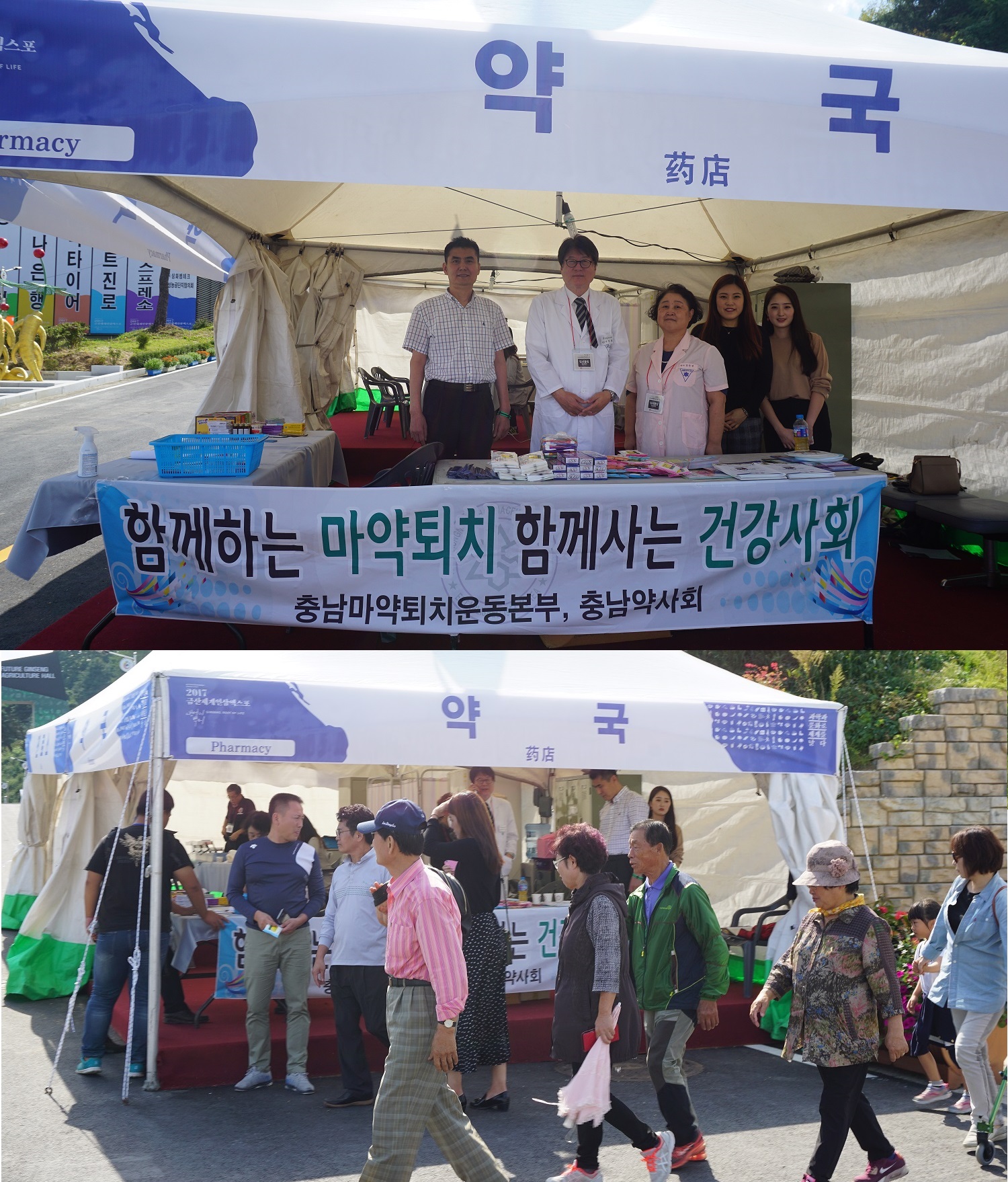 이날, 임시약국에서는 충남마약퇴치운동본부(본부장 박정래)와 불법마약류퇴치캠페인도 함께 홍보했다.