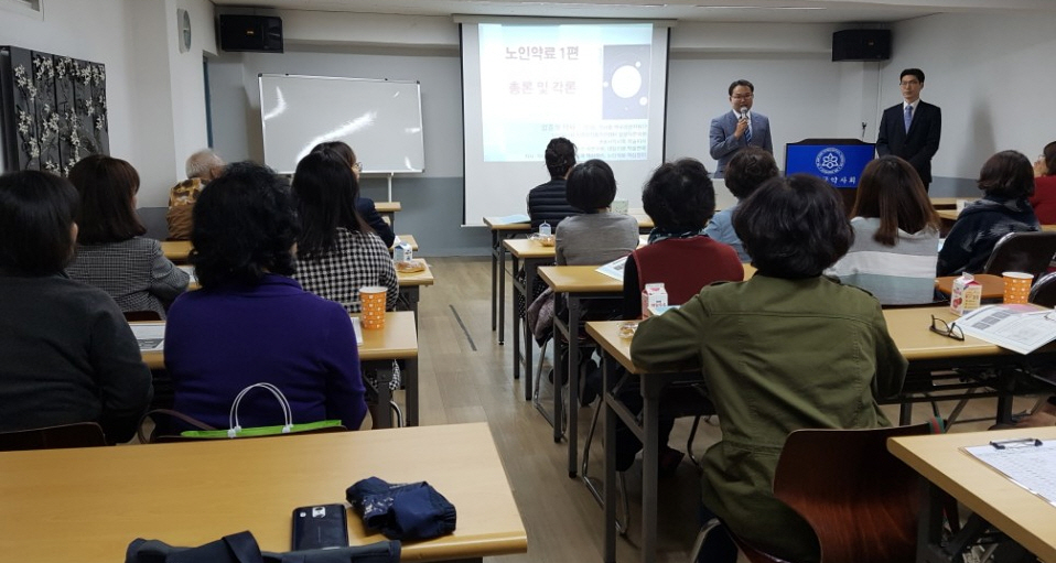 중랑 팜리더스쿨은 엄준철 약사의 '노인약료 핵심정리' 교재를 기반으로 진행되며 첫 강의는 ‘노인약료1편 총론 및 각론‘ 강의로써 노화에 따른 신체적 특성, 노인 증후군, 노인에게 부적절한 약물, 각 질환별 노인약료 등애 대한 강의가 실시됐다.