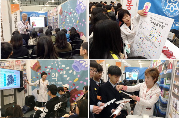 진로설명부스에는 약사 직업군을 비롯해 직업 전망, 약사가 되는 길, 약사의 역할, 직업 만족도, 질의응답이 진행되었다.