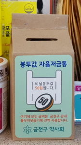 금천구약, 봉투값 자율저금통 회원약국 배포