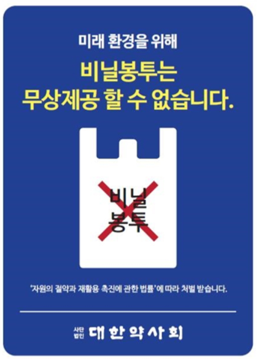 대한약사회(회장 조찬휘)는 1회용 비닐봉투 무상공급과 관련한 홍보안내물을 제작해 14일부터 배포에 들어간다고 밝혔다.