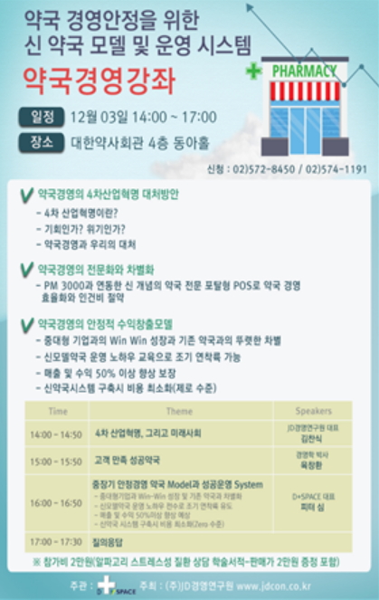 약의 조제와 판매만으로는 약국 운영이 어렵다면, 새로운 매출을 창출해 낼 대안을 제시하는 특별한 강연에 주목해보자.