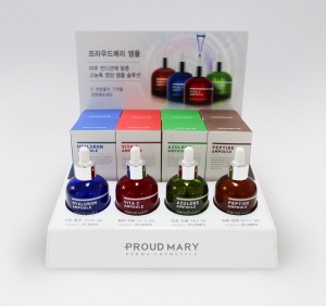 프라우드메리 고농축 영양 앰플 4종은 브랜드의 베스트셀러인 인기제품으로 2017년 하반기 앰플 라인 4종의 주력 성분 함량을 높이는 등 한층 업그레이드해, 피부를 환하게 가꿔주는 비타C 앰플, 모공수렴 및 수딩케어가 가능한 아줄렌 앰플, 촉촉한 피부 보습을 위한 히알루론 앰플, 주름개선 기능성 제품인 펩타이드 앰플로 약국에서도 가장 인기가 있다.