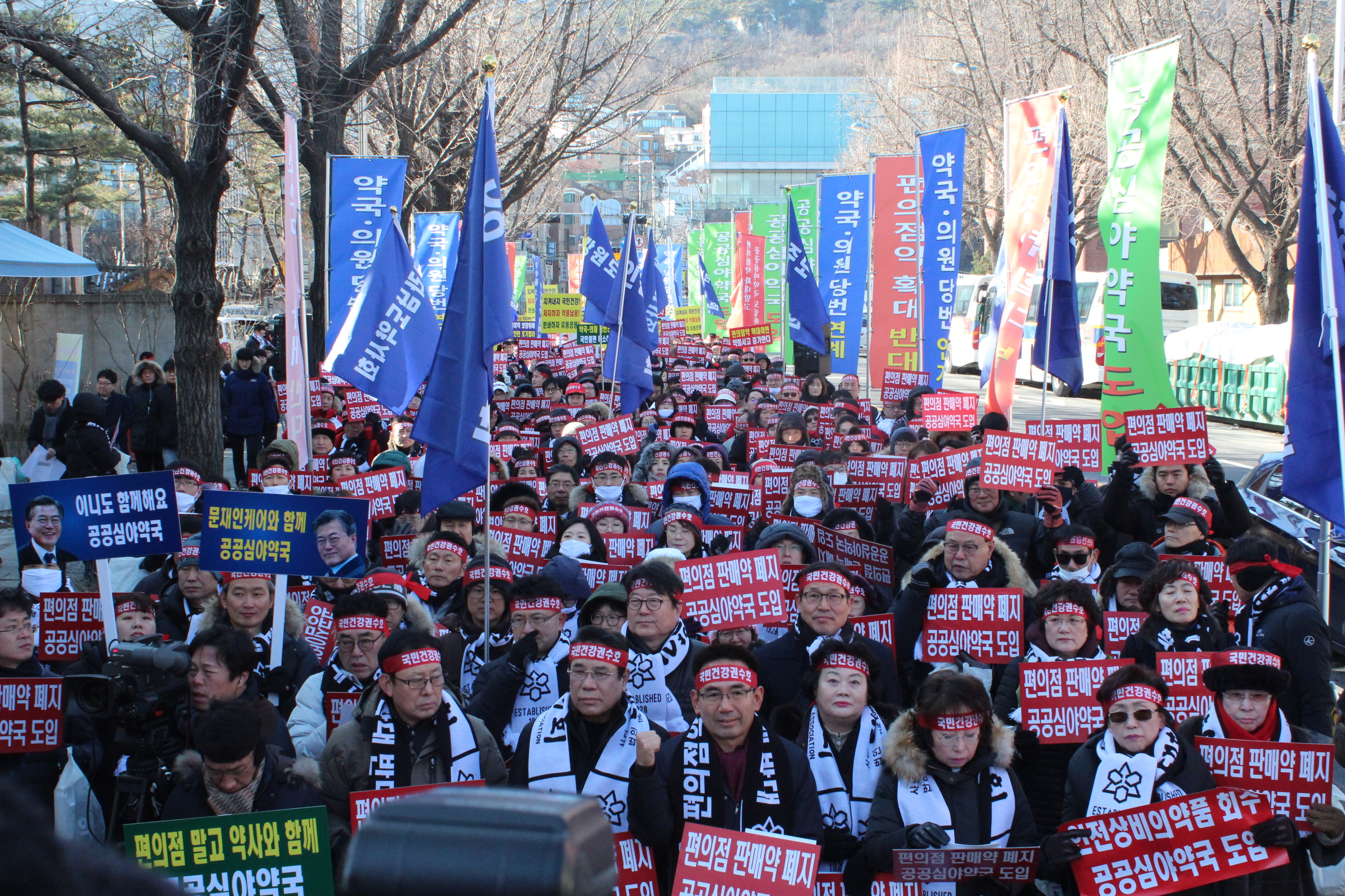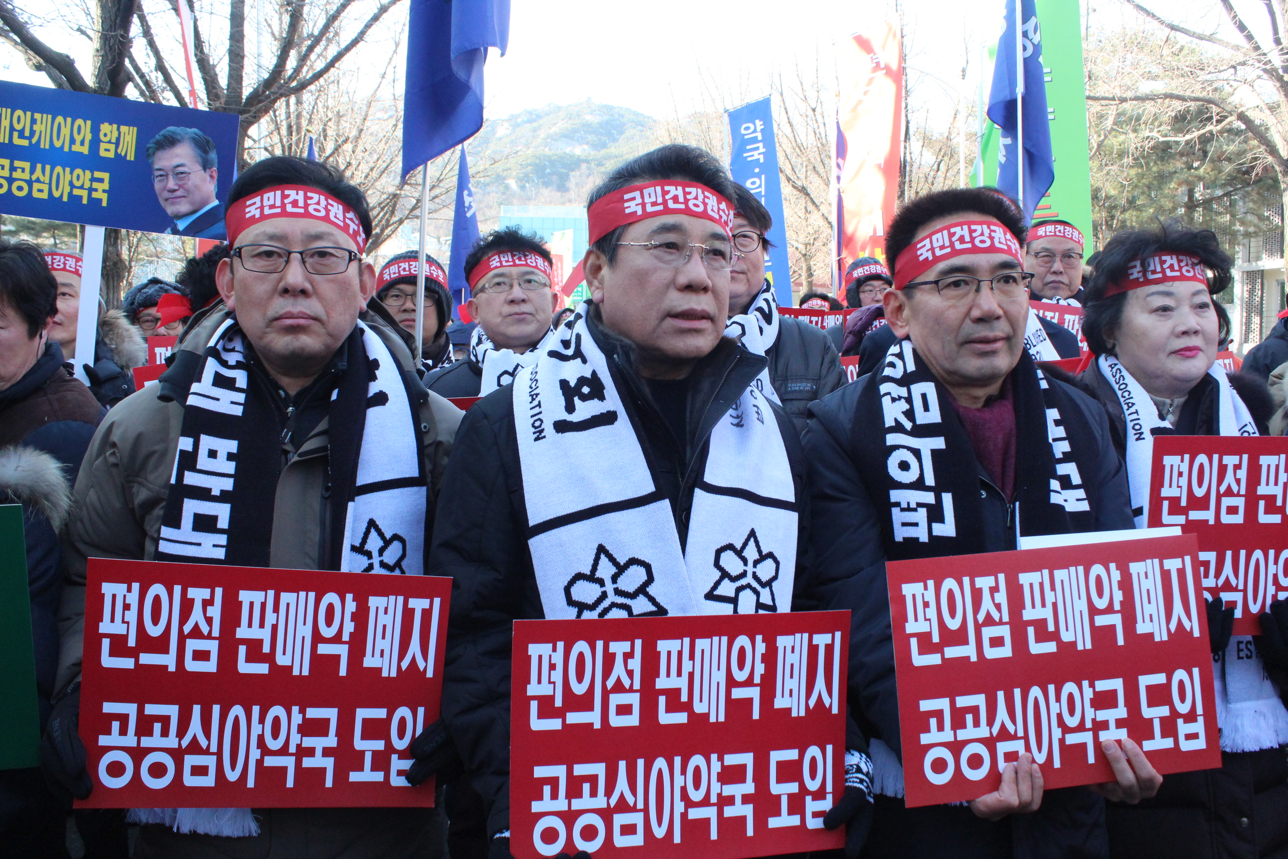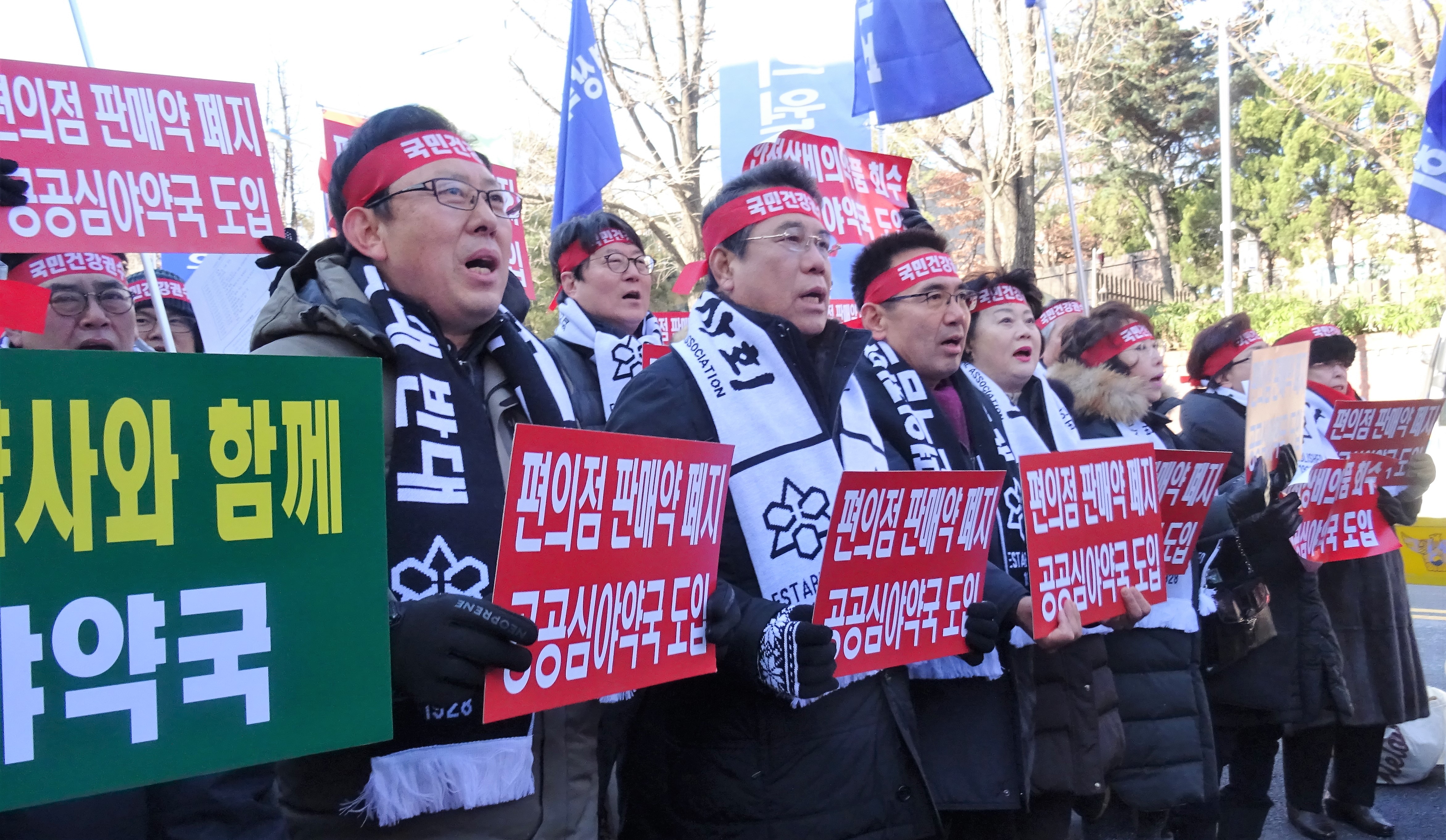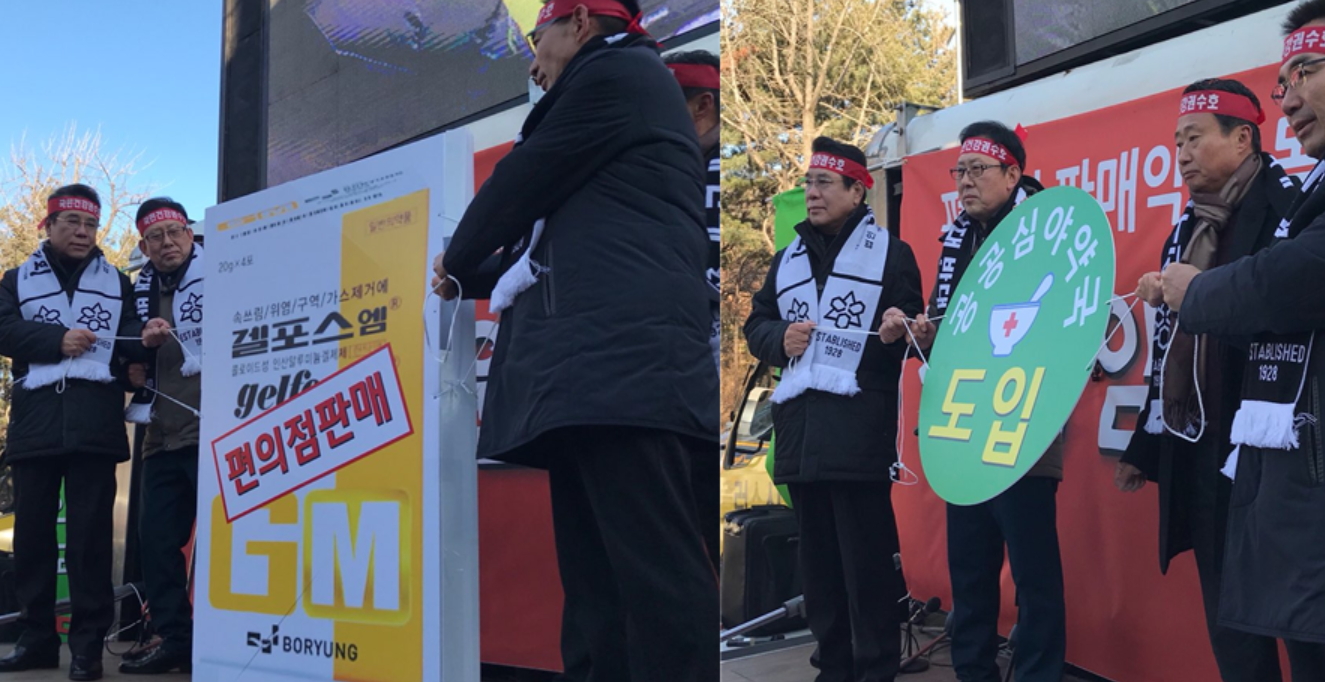 편의점 판매 의약품의 품목 확대 저지를 위해 약사들이 강추위에 거리로 나섰다.