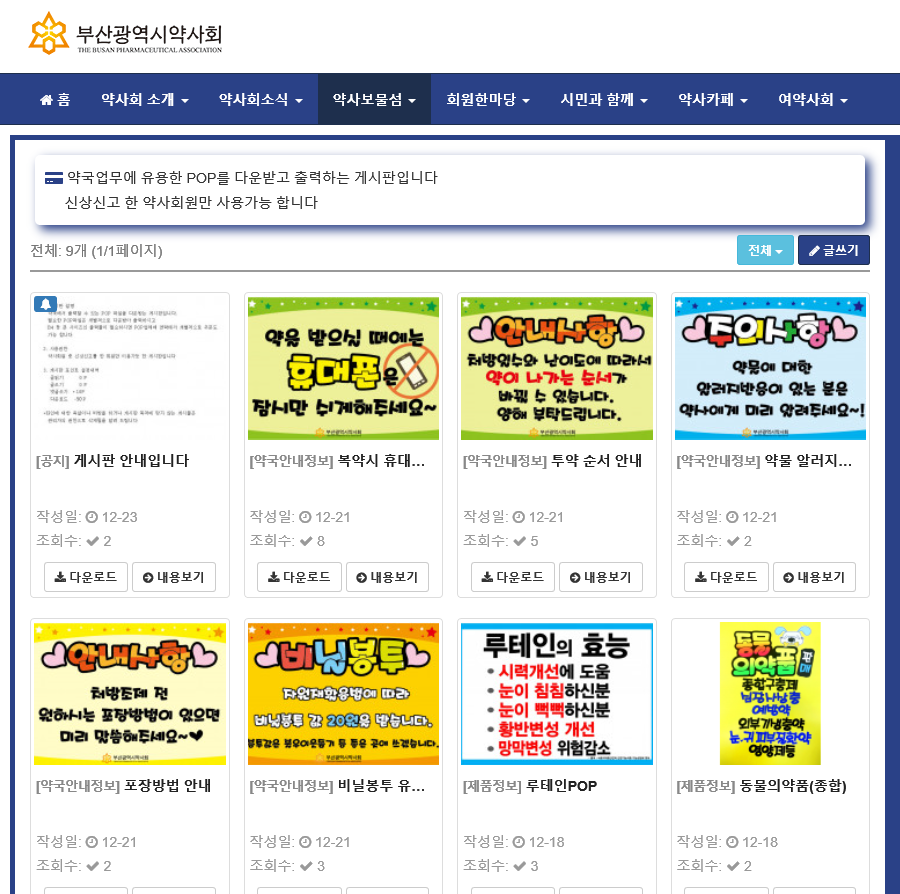 특히 구인‧구직, 약국매매 게시판을 사설 업체 게시판과 동일한 수준으로 기능을 개선했으며, 구직게시판을 통해 부산시내 대학교 의료행정학과 학생들의 약국 지원도 가능하다.