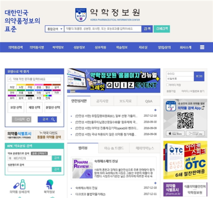 한편, 약학정보원은 홈페이지 개편 오픈에 맞추어 의약정보 퀴즈이벤트를 진행한다. 자세한 내용은 약학정보원 홈페이지(www.health.kr)에서 확인 가능하다.