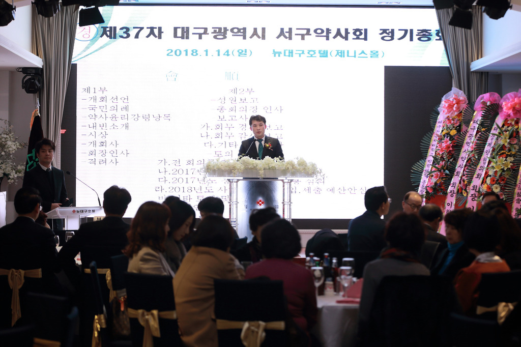 대구시 서구약사회는 1월 14일 뉴대구호텔 10층 제니스홀에서 제37차 정기총회를 열고 2018년도 사업계획과 4,000만원의 예산안을 통과시켰다.