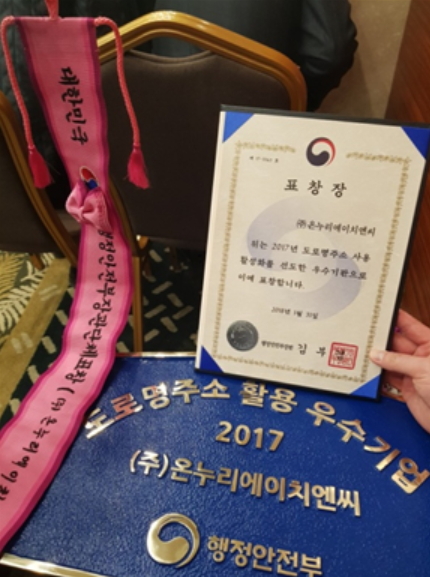 온누리에이치엔씨는 행정자치부가 주관하는 ‘2017년 도로명주소 활용 우수기업’에 선정되어 행정안전부 장관표창을 수상했다고 31일 밝혔다.
