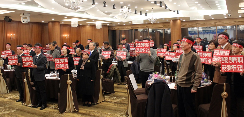 강원도약사회가 편의점약 품목확대 저지 결의대회에서 전 정권이 파괴한 사회안전망을 보구하라고 촉구했다.