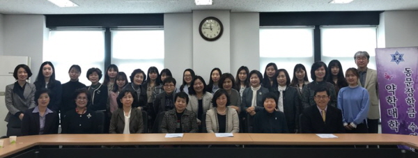 숙명여자대학교 약학대학 동문회(회장 김진선)는 3월 29일 약학대학 학장실에서 ‘2018년 1학기 동문기금 장학금 및 학기 우등상 수여식’을 개최했다.