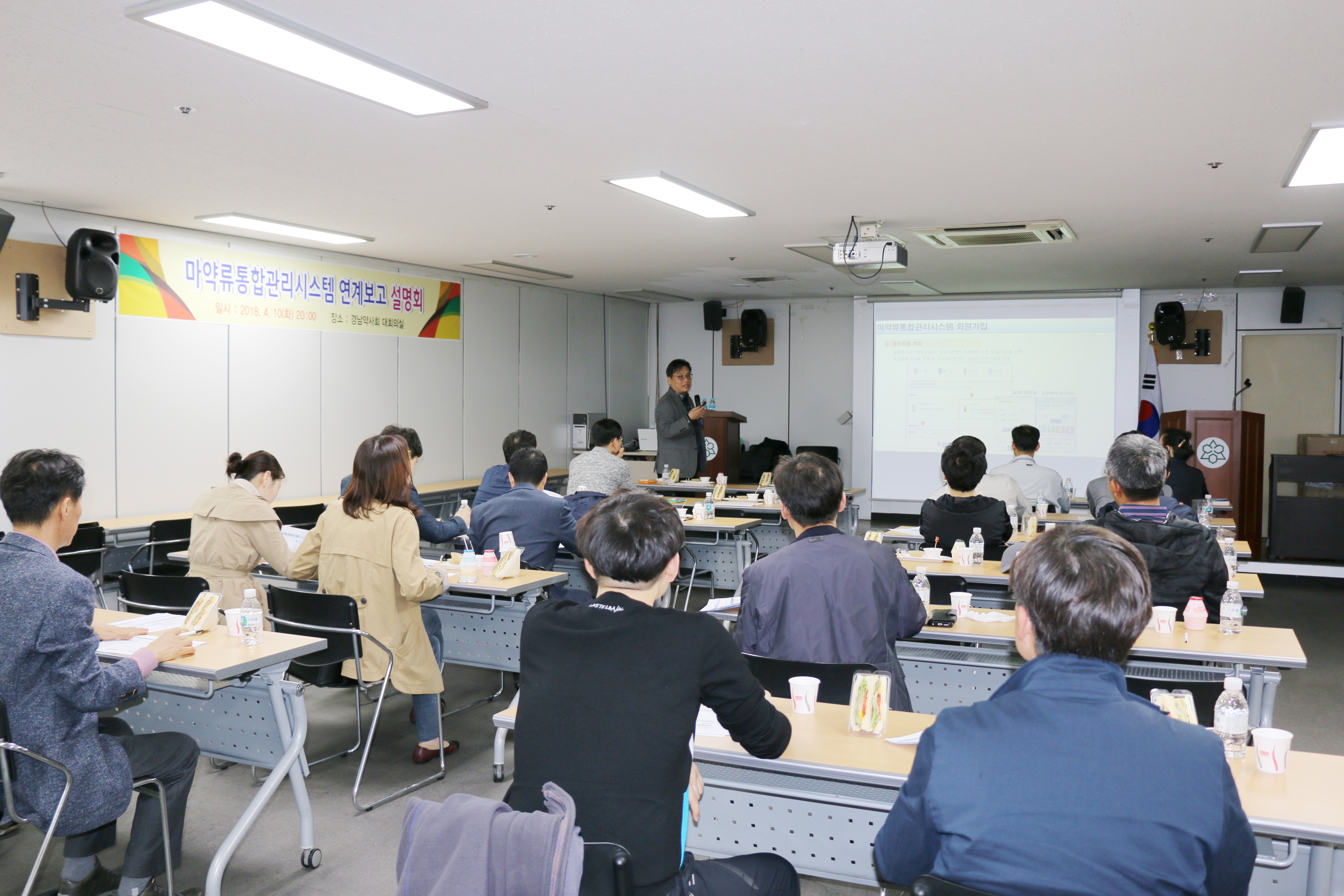 최종석 담당 부회장은 통합 전산시스템 회원가입 중요성을 강조하는 한편 계도기간을 안내하고 약사법과 연계된 사항을 설명했다.
