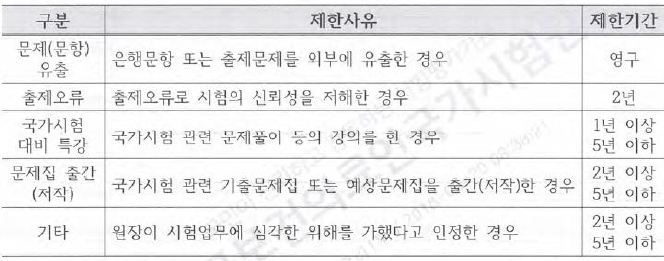 올 3월 1일부터 국가시험의 공정성을 확보하기 위해 특강을 하거나 국가 시험 기출 문제집, 또는 예상문제집을 출간한 자가 시험위원으로 위촉되지 않게 제한을 하게 된다.