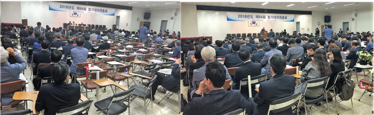 오후 2시부터 열린 총회는 총 398명의 대의원 중 224명이 참석하고 50명이 위임을 받아 성원으로 개회됐다.