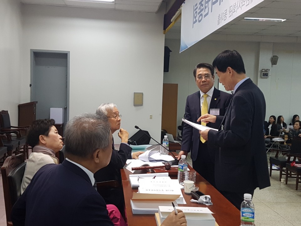전웅철 대의원은 "신성숙 윤리위원장은 2012년 제소한 문건을 사무처 규정에 맞지 않게 처리했고, 자료제출마저 거부했다"며 "최종이사회에서 총회 의장에 대한 자격 상실을 상임이사회도 거치지 않고 일방적으로 발표해 총회 의장의 유고까지 통보하는 것은 월권행위"라고 지적했다.