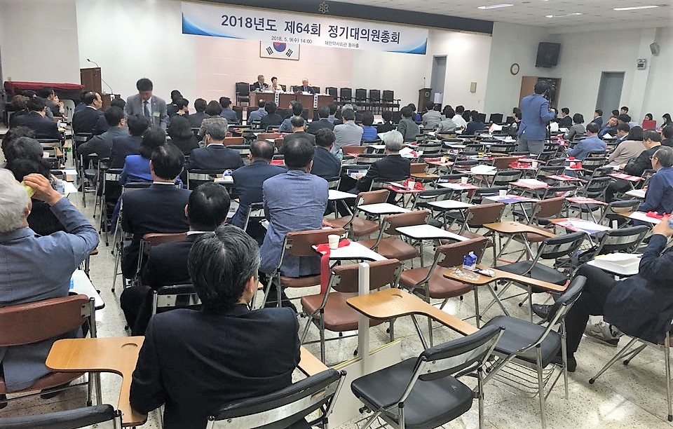 오후 2시부터 열린 총회에는 총398명의 대의원 중 224명이 참석했고, 위임 50명으로 성원됐지만, 오랫동안 진행된 회의에 오후 6시쯤 대의원들이 대거 자리를 비웠다.