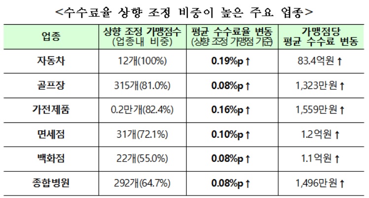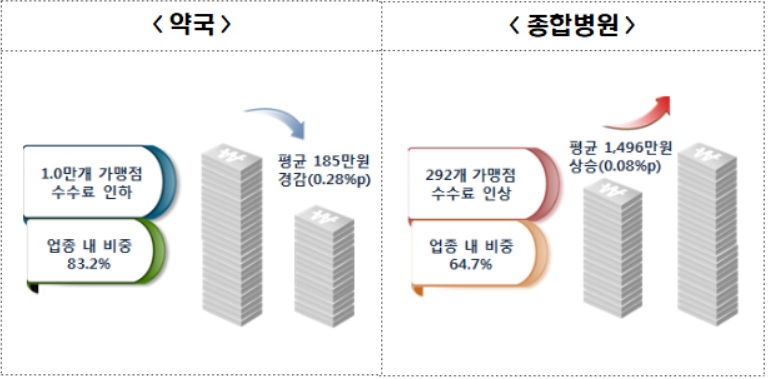 반면, 종합병원은 수수료율 상향 조정 비중이 높은 주요업종으로 잡혀 가맹점당 0.08%p에 해당하는 1,496만원이 인상이 예상된다.