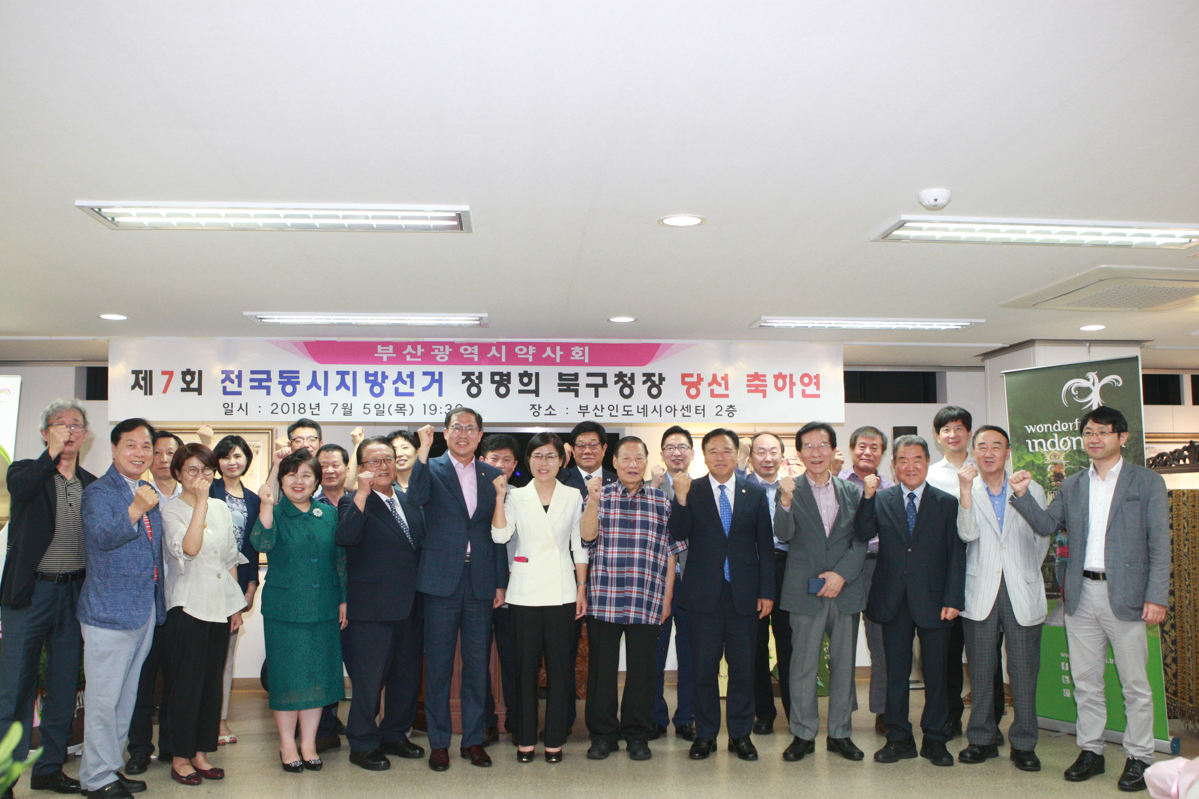 부산시약사회(회장 최창욱)는 제7회 전국동시지방선거에서 부산 북구청장으로 당성된 정명희 회원의 당선 축하연을 5일 오후 7시 30분 북구 관내에 위치한 인도네시아센터 2층에서 개최했다.