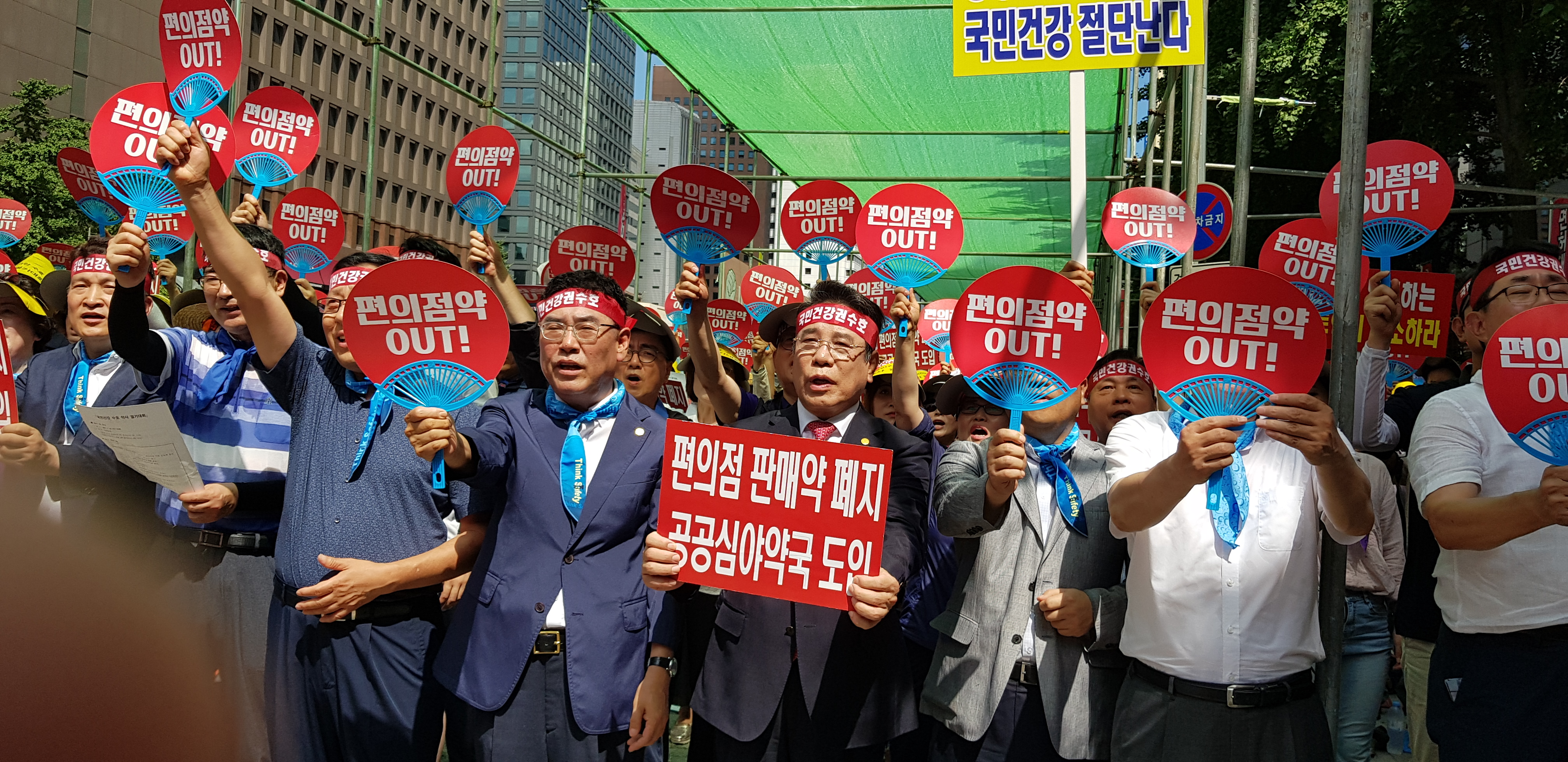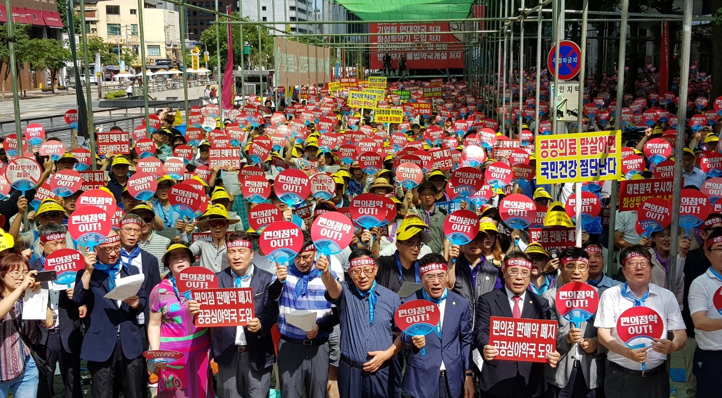 '국민건강 수호 약사 궐기대회' 는 △편의점 판매약 확대 저지△기업형 면대약국 척결 및 병·의원내 불법 약국개설 저지 △화상투약기 도입 저지 △대자본의 영리 법인약국 도입 철회 △재벌친화정책으로부터 의약품 안전성 확보를 요구하고 있다.