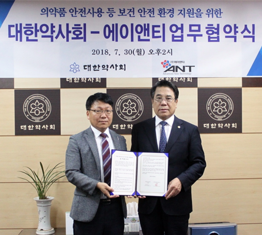 대한약사회(회장 조찬휘)는 30일 에이앤티(대표 구정현)와 의약품 안전사용 등 보건 안전 환경 지원을 위한 업무 협약을 체결했다.