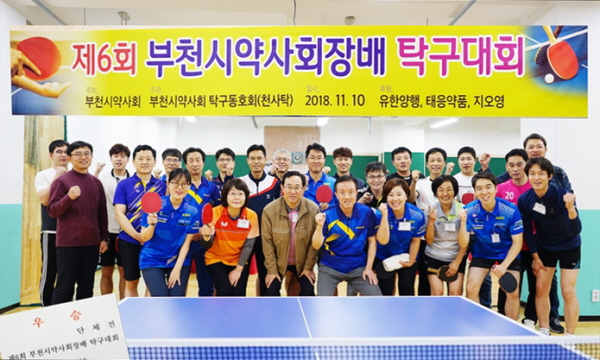 부천시약사회(회장 이광민)가 주최하고 탁구동호회 천사탁(동호회장 이정원)이 주관한 제6회 부천시약사회장배 탁구대회가 지난 10일 중동에 위치한 부광탁구장에서 열렸다. 이번 대회는 유한양행, 태응약품, 지오영이 후원했다.