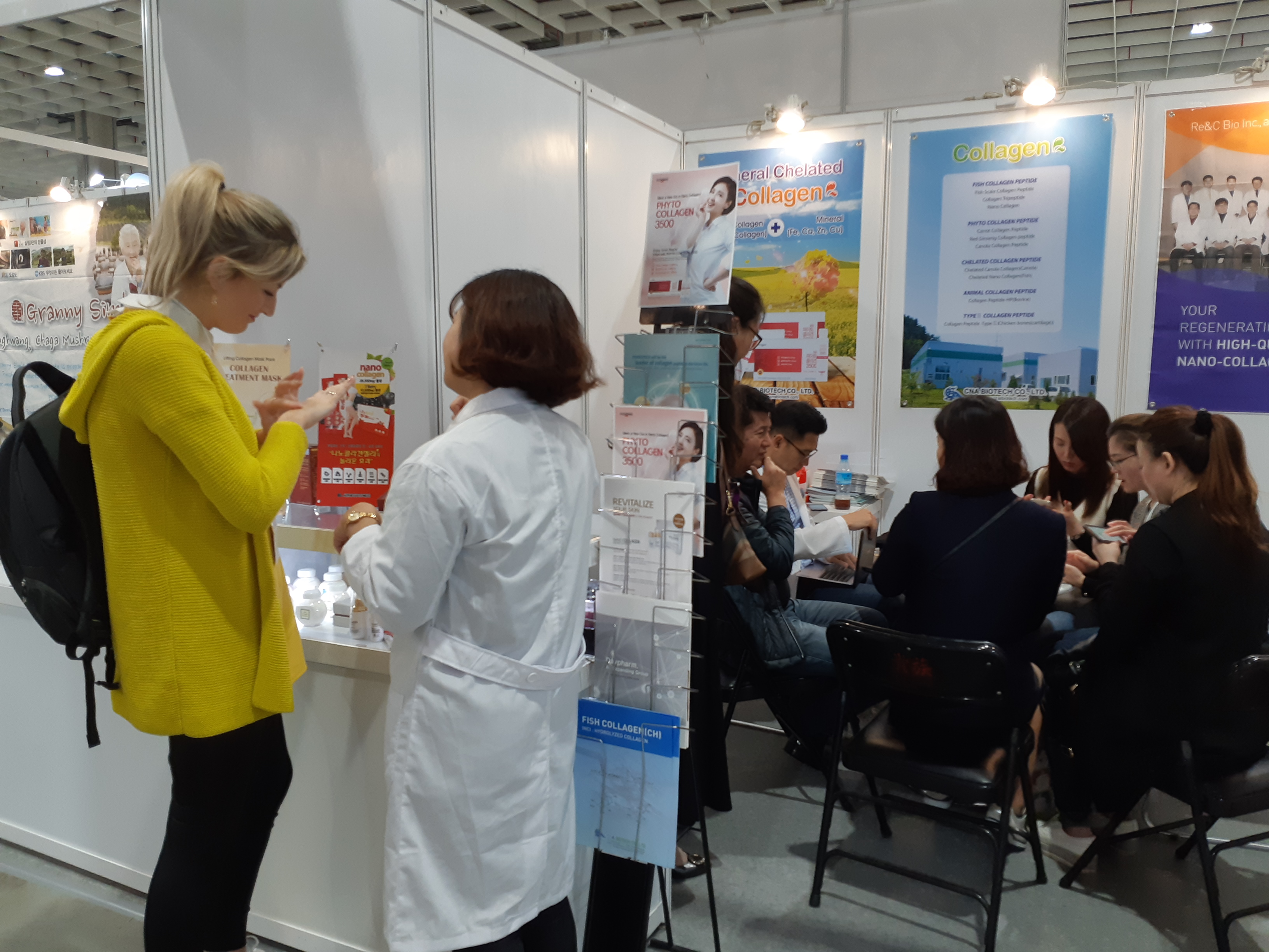 리앤씨바이오는 이번 엑스포 참가를 통해 나노콜라겐, 파이토콜라겐 원료는 물론 뉴트리파마 파이토콜라겐3500, 나노콜라겐젤리, 나노콜라겐15000, 나노콜라겐22000 등 건강식품과 힙스 콜라겐에센스, 마스크팩, 고스샴푸 등 화장품까지 다양한 제품을 바이어들에게 선보였다.