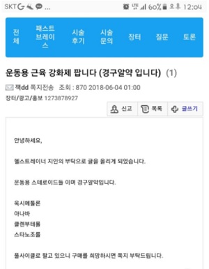 약준모는 "지난 24일 헬스장에서 스테로이드 의약품이 심각하게 오남용 되고 있는 현장이 보도됐다"며 "근육량을 늘려준다는 말에 혹해 스테로이드 제제를 함부로 투약한 사람은 근육괴사, 고환위축, 간독성, 생리불순(여성) 등 심각한 부작용 경험을 토로했다. 그러나 지금 이 순간도 인터넷에서는 오남용 의약품을 너무나도 손쉽게 구할수 있다"고 말했다.