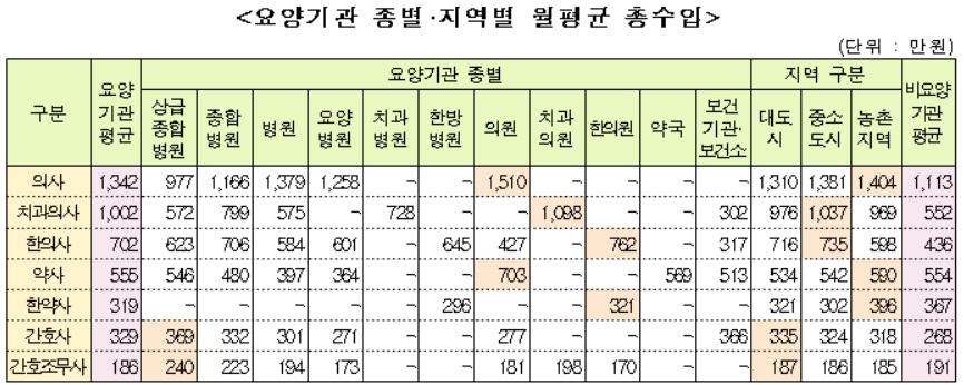 이는 간호사와 한약사보다는 높았지만 의사 치과의사 한의사에 비해서는 크게 낮은 수준이었다.